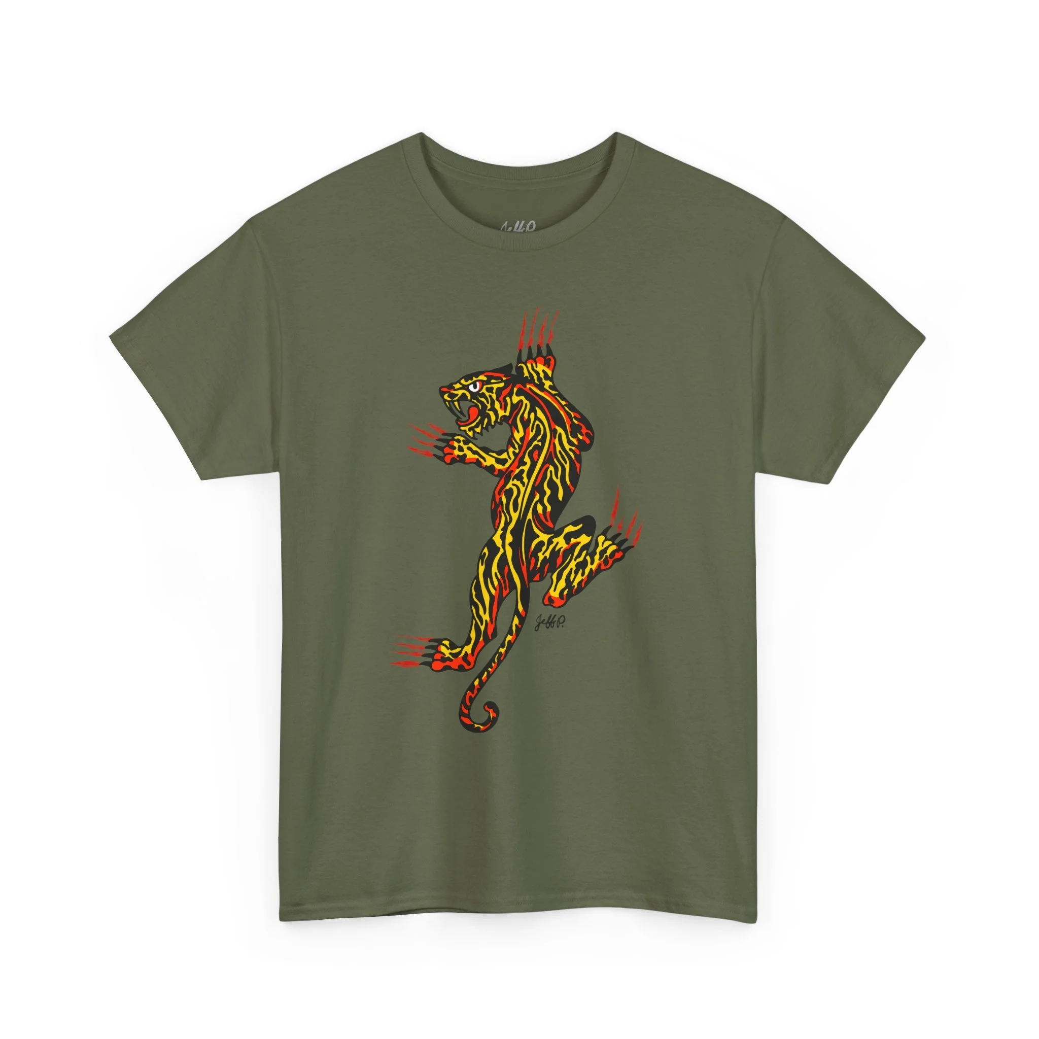 "Crawling Leopard" Tattoo Tee - Black/Gold