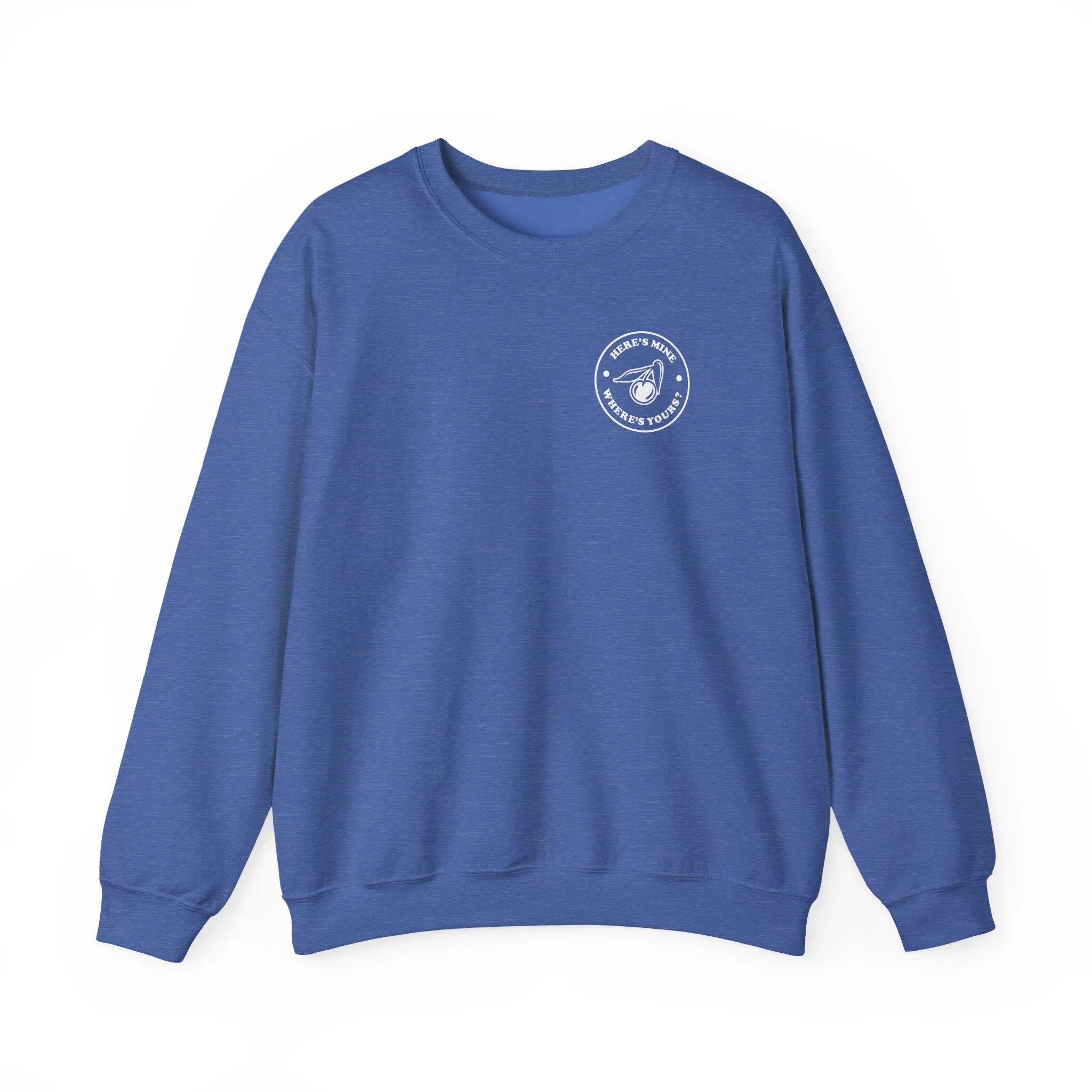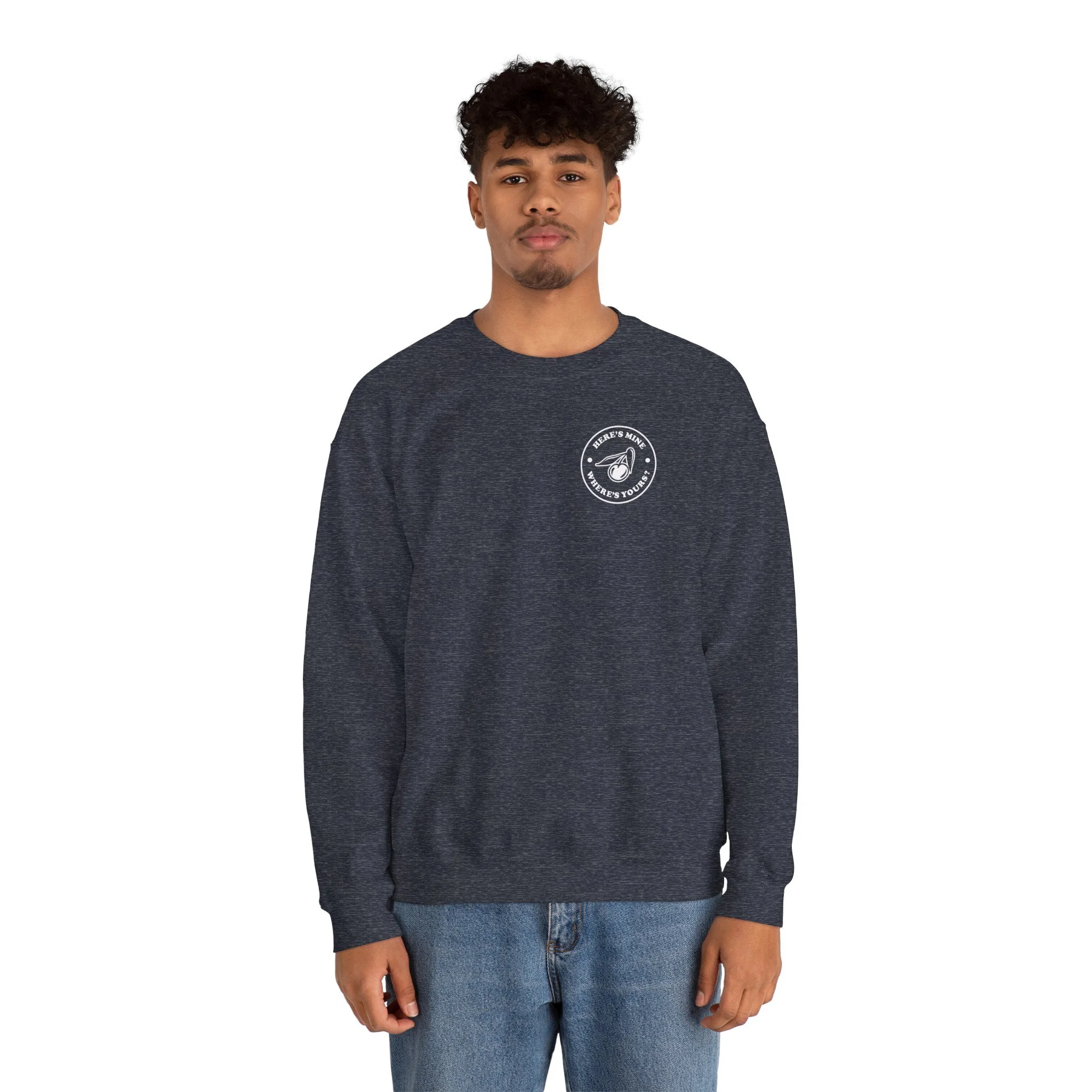 Printed on Gildan Heavy Blend Crewneck Sweatshirts.